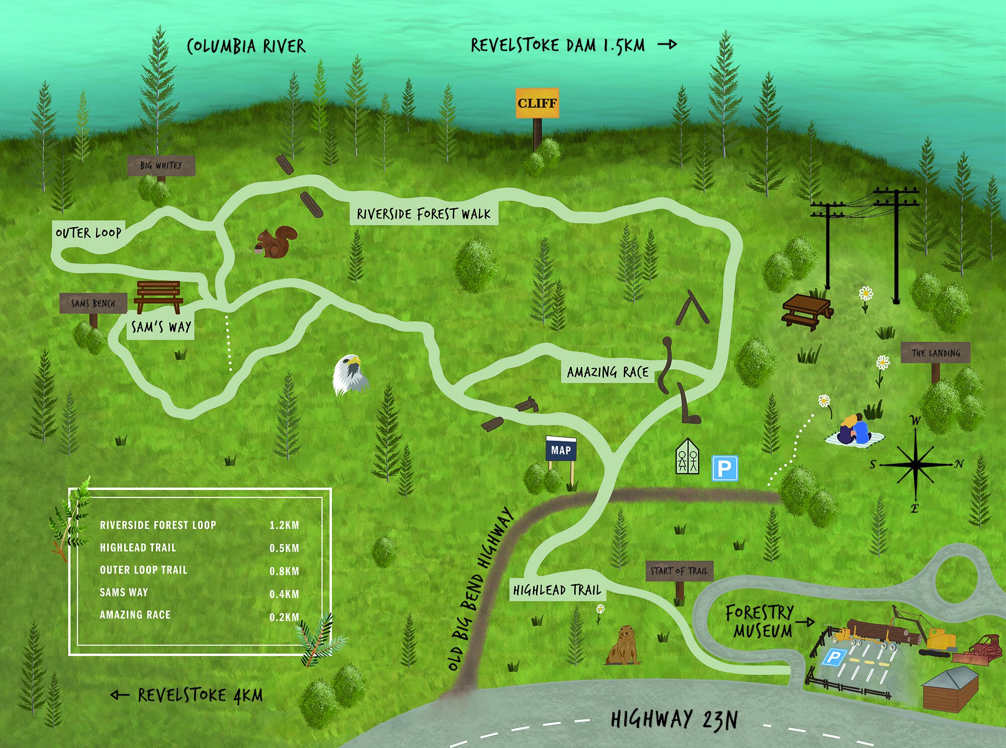 The BC interior Forestry Museum has developed easy walking trails to encourage low impact exercise for all age groups.  While walking through the forest enjoy the interpretive information and the sound of the Columbia River rolling by.  The trails are open year round.